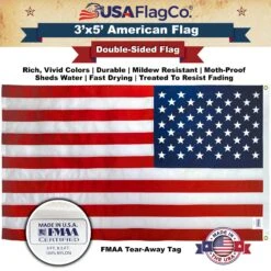 ★ 100% MADE IN THE USA: Authentic FMAA Certified American Flags for outside 3×5, proudly crafted and 100% Made in USA by USA Flag Co. As you hoist this remarkable 3×5 American flag and witness the iconic Red, White, and Blue Stars and Stripes fluttering in the sky, a deep sense of pride will resonate within your soul—declaring, “I’m Proud to be an American.” Fly your US Flag with unwavering pride, showcasing your genuine allegiance to the land of the free and the home of the brave.