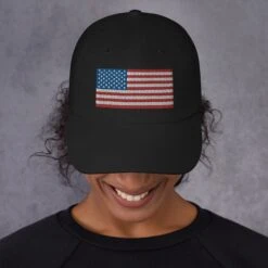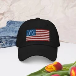Dad hats aren’t just for dads. This USA Flag Hat has a low profile with an adjustable strap and curved visor.