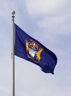 Our most popular and versatile outdoor Michigan flag, USA Flag Co. flags offer the optimum combination of elegance and durability for every purpose. The 100% nylon material provides a rich, lustrous appearance. Our flags have superb wearing strength due to the materialās superior strength-to-weight ratio and will fly in the slightest breeze. State flags are finished with strong, polyester canvas headings and spurred brass grommets, and four needle fly hem. The result is a flag that will be flown with pride year after year.