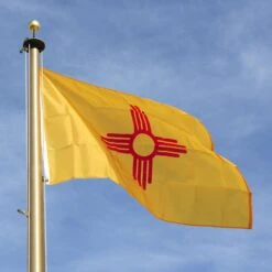 Our most popular and versatile outdoor New Mexico flag, USA Flag Co. flags offer the optimum combination of elegance and durability for every purpose. The 100% nylon material provides a rich, lustrous appearance. Our flags have superb wearing strength due to the material’s superior strength-to-weight ratio and will fly in the slightest breeze. State flags are finished with strong, polyester canvas headings and spurred brass grommets, and four needle fly hem. The result is a flag that will be flown with pride year after year.
