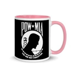 Add a little color to your day with this beautiful POW MIA Mug design, cups of morning coffee with our White Ceramic Sublimation Coffee mugs, now available with colored insides and matching handles!