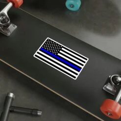 This custom Thin Blue Line Flag decalĀ is great for both indoor and outdoor use as they are made with thick, resistant, laminate vinyl material. The easy-peel backing makes for great ease of use, while the matte finish helps your designs look sleek on any surface.