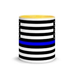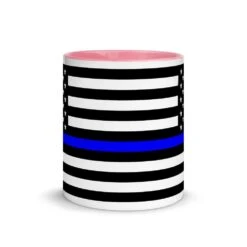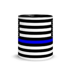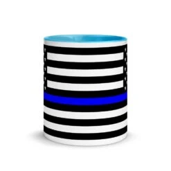 Add a little color to your day with this beautiful Thin Blue Line Mug design, cups of morning coffee with our White Ceramic Sublimation Coffee mugs, now available with colored insides and matching handles!