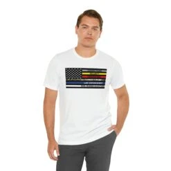 Introducing our Thin Line USA Flag T-Shirt, the perfect way to show off your patriotic pride and support for our First Responders. These unisex shirts are designed to fit both men and women comfortably, making them the perfect gift for anyone who loves America and all that it stands for.