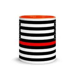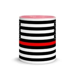 Add a little color to your day with this beautiful Thin Red Line Mug design, cups of morning coffee with our White Ceramic Sublimation Coffee mugs, now available with colored insides and matching handles!