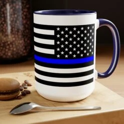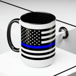 Here to bring big gulps of coffee and style, these two-tone Thin Blue Line Flag coffee mugs help people around the world start the day just right. Choose between 5 different color options to best complement your designs. EachĀ Thin Blue Line Flag mug comes with a colored handle, a colored interior, and a classy, glossy finish so that your mugs become an instant favorite.