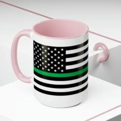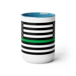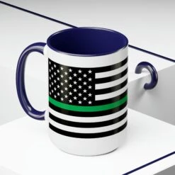 Here to bring big gulps of coffee and style, these two-tone Thin Green Line Flag coffee mugs help people around the world start the day just right. Choose between 5 different color options to best complement your designs. EachĀ Thin Green Line Flag mug comes with a colored handle, a colored interior, and a classy, glossy finish so that your mugs become an instant favorite.