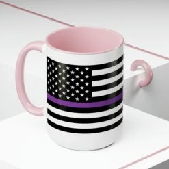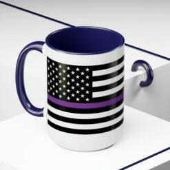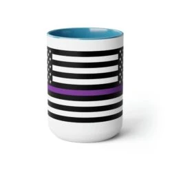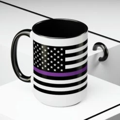 Here to bring big gulps of coffee and style, these two-tone Thin Purp Line Flag coffee mugs help people around the world start the day just right. Choose between 5 different color options to best complement your designs. EachĀ Thin Purple Line Flag mug comes with a colored handle, a colored interior, and a classy, glossy finish so that your mugs become an instant favorite.