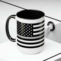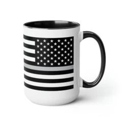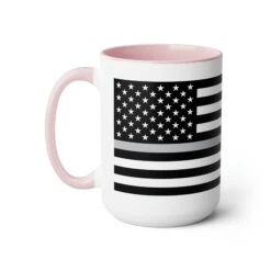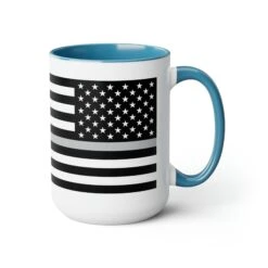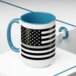 Here to bring big gulps of coffee and style, these two-tone Thin Silver Line Flag coffee mugs help people around the world start the day just right. Choose between 5 different color options to best complement your designs. Each Thin Silver Line Flag mug comes with a colored handle, a colored interior, and a classy, glossy finish so that your mugs become an instant favorite.