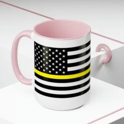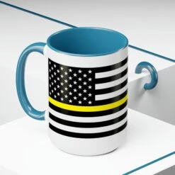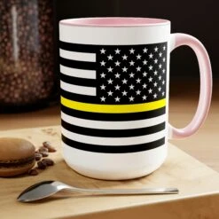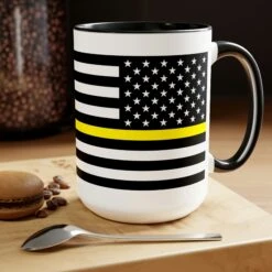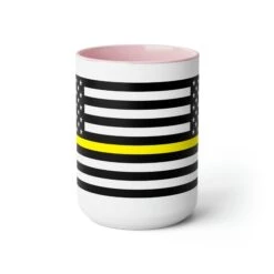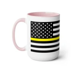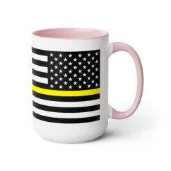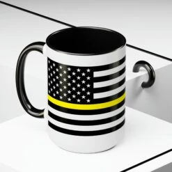 Here to bring big gulps of coffee and style, these two-tone Thin Yellow Line Flag coffee mugs help people around the world start the day just right. Choose between 5 different color options to best complement your designs. EachĀ Thin Yellow Line Flag mug comes with a colored handle, a colored interior, and a classy, glossy finish so that your mugs become an instant favorite.